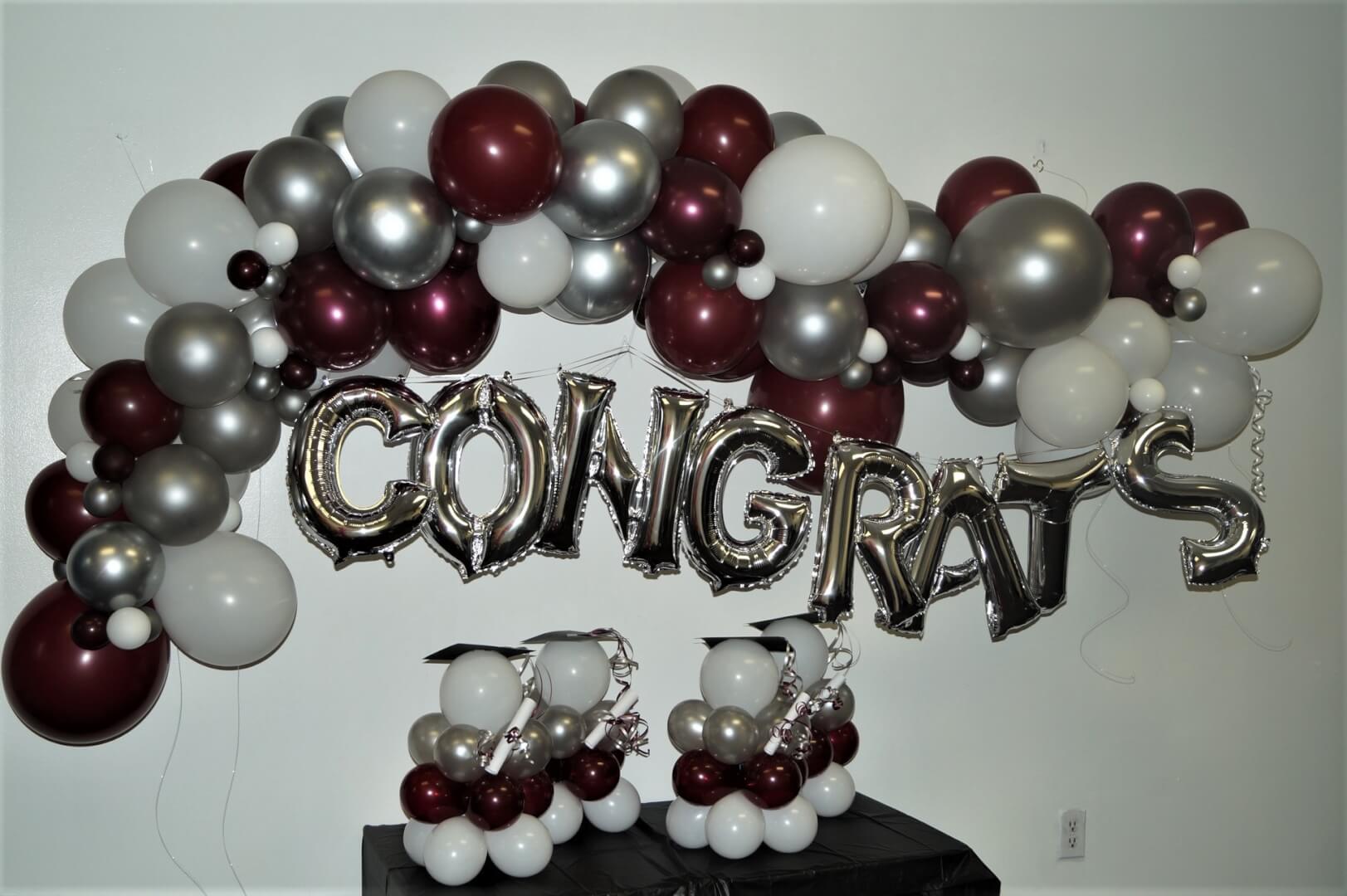 congratulations graduate balloon garland  banner and balloon sculptures