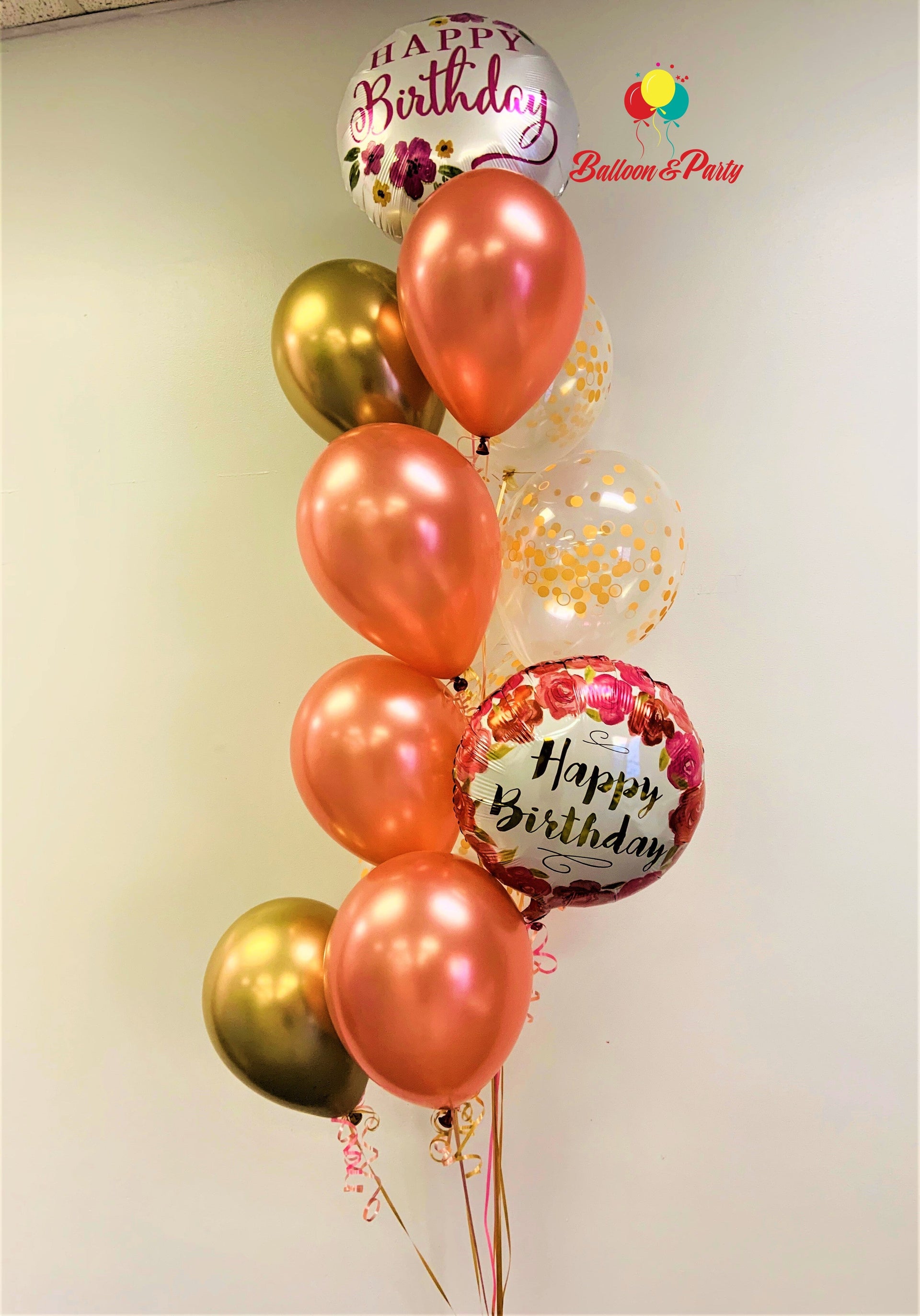 Rose Gold and Confetti Happy Birthday Bouquet