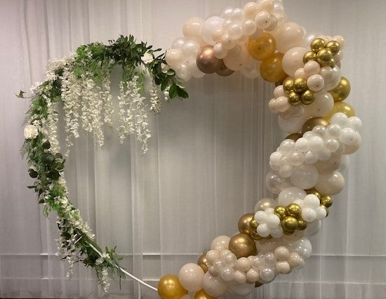 Don't settle for a generic backdrop stand for your special occasions. Add a touch of love and uniqueness with our heart-shaped backdrop stand. Order now and make your events even more special! Floral, balloon and other accents sold separately